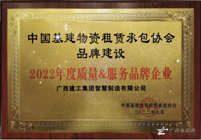 廣西建工集團智慧制造有限公司榮獲“2022年度質量服務品牌企業”,公司董事長、黨總支書記李日紅榮獲“2022 年全國基建物資租賃承包行業杰出創(chuàng)新人才”稱號。